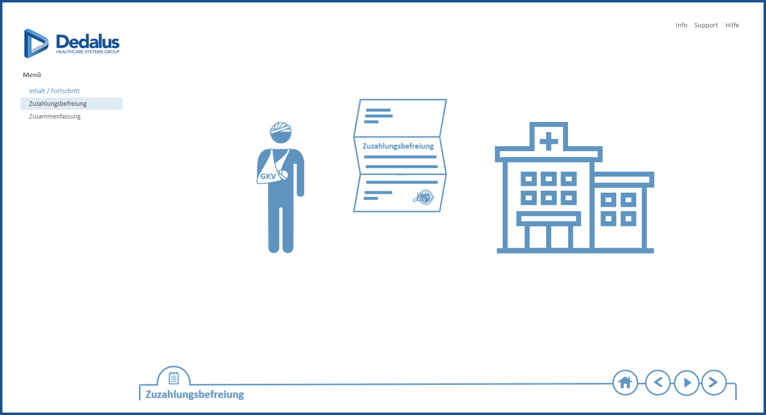 Bearbeitungszeit: ca. 10 Minuten (Um das Training auf Ihre Tätigkeit im Krankenhaus auszurichten, können Sie im Training einen Typ auswählen: Station, Ambulanz, Funktionsstelle oder Wirtschafts- und Versorgungsbereich. Wenn Sie das Training für einen anderen Typ wiederholen, verlängert sich das Training um jeweils ca. 5 Minuten.)