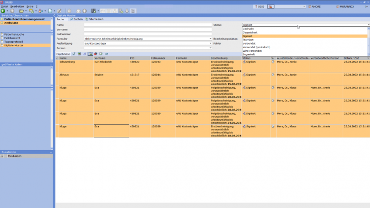 In diesem Online-Training erfahren Sie, wie Sie in der Übersicht Digitale Muster die entsprechenden Dokumente drucken, signieren und versenden. Zudem zeigen wir Ihnen, wie Sie die eAU und das eRezept im Stapel signieren und versenden.