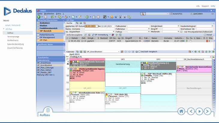Die Übersicht OP Management enthält verschiedene Listen.