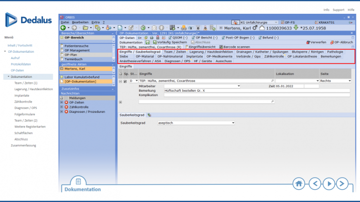 In ORBIS erfolgt dies über die OP-Dokumentation. In dieser Lerneinheit zeigen wir Ihnen exemplarisch einen Ablauf.
