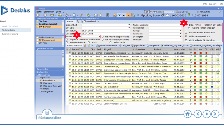 Die Übersicht OP Management enthält die Rückstandsliste.