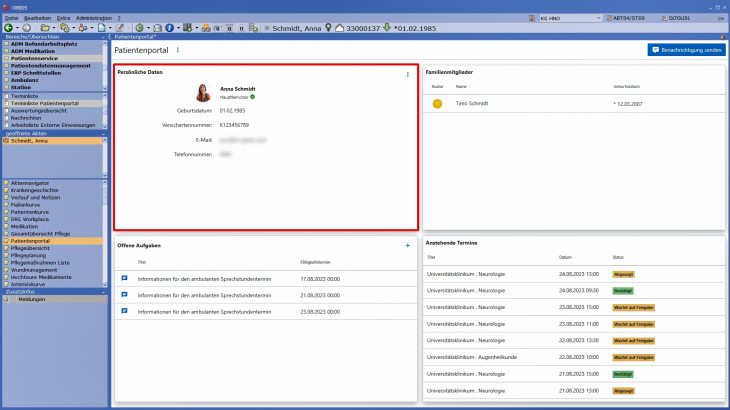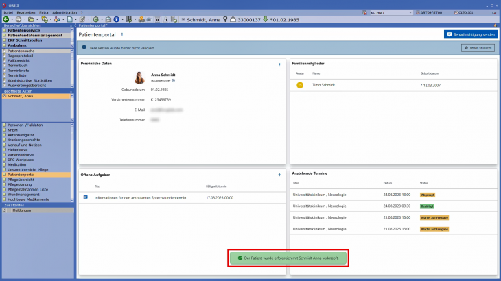 In diesem Video zeigen wir Ihnen den Aufbau sowie die Funktionen des Ordners Patientenportal anhand eines bereits verknüpften und validierten Nutzers.