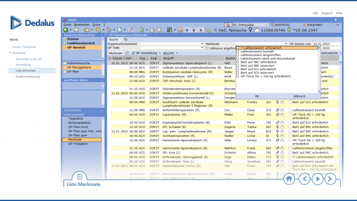 Für präoperative Prozesse steht Ihnen im OP Management die Liste Merkmale zur Verfügung.