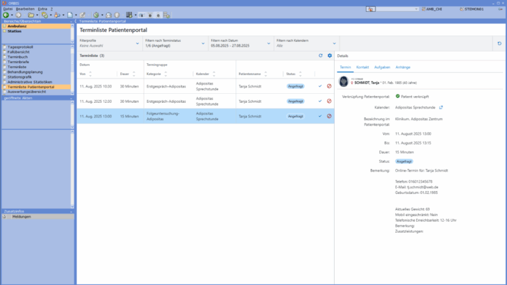 In diesem Online-Training werden Ihnen der Aufbau und die Grundlagen des Patientenportals erläutert. Sie erfahren beispielsweise, wie Termine verwaltet und bearbeitet werden.