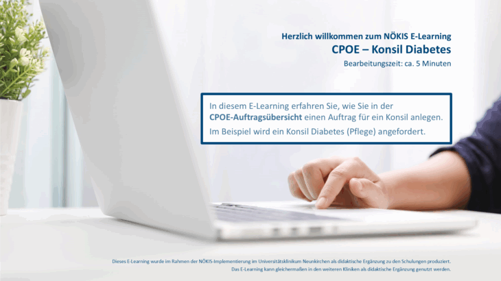 In diesem E-Learning erfahren Sie, wie Sie in der CPOE-Auftragsübersicht einen Auftrag für ein Konsil anlegen.